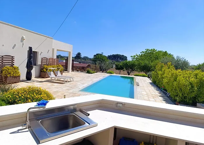 La Villa Martino: Oasi Tranquillita Martina Franca, situada a 4 km del Valle de Itria de Martina Franca, ofrece una terraza con vistas al jardín. Con un aparcamiento privado gratuito, la villa se encuentra a 10 minutos en coche de il MuBa - Museo della Basilica di San Martino.